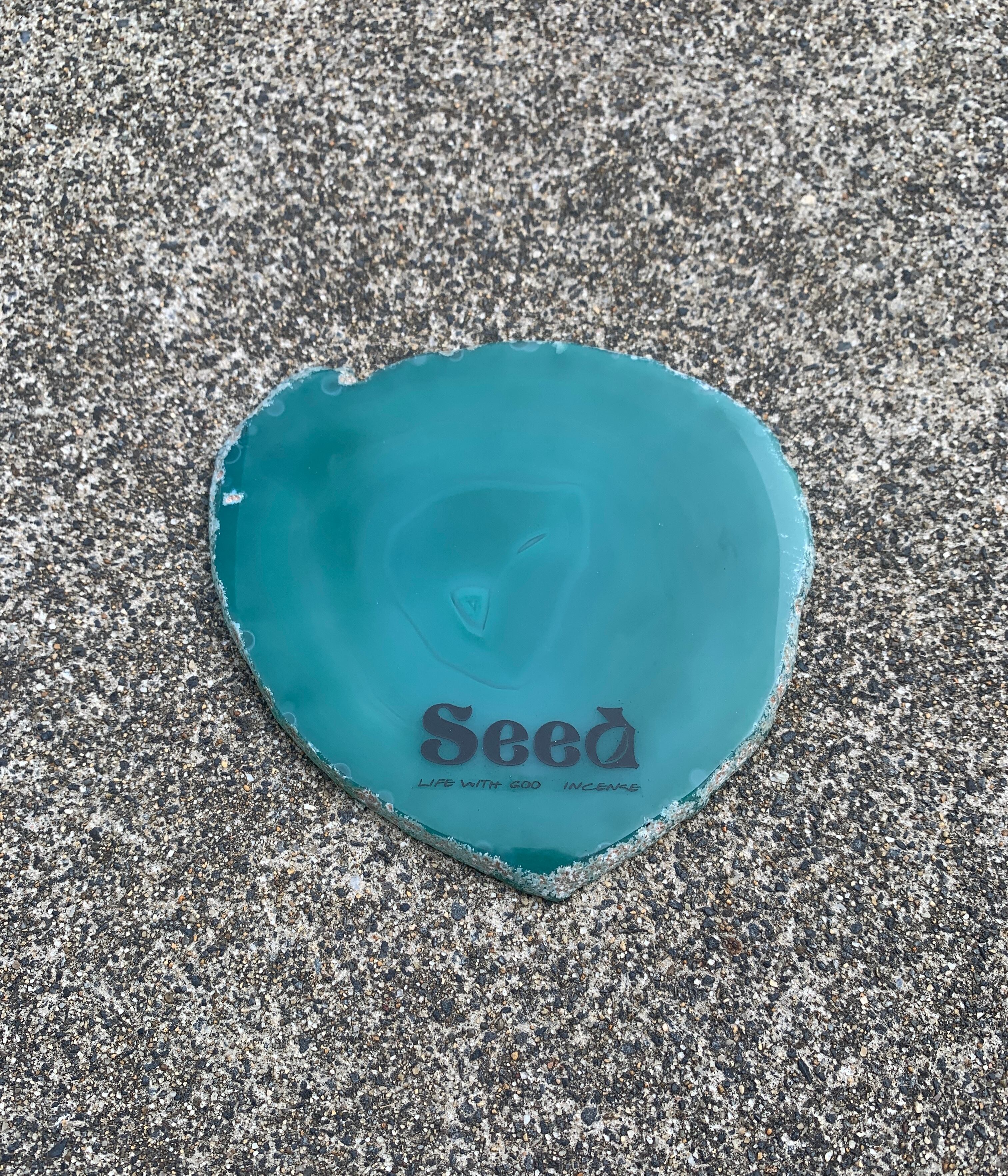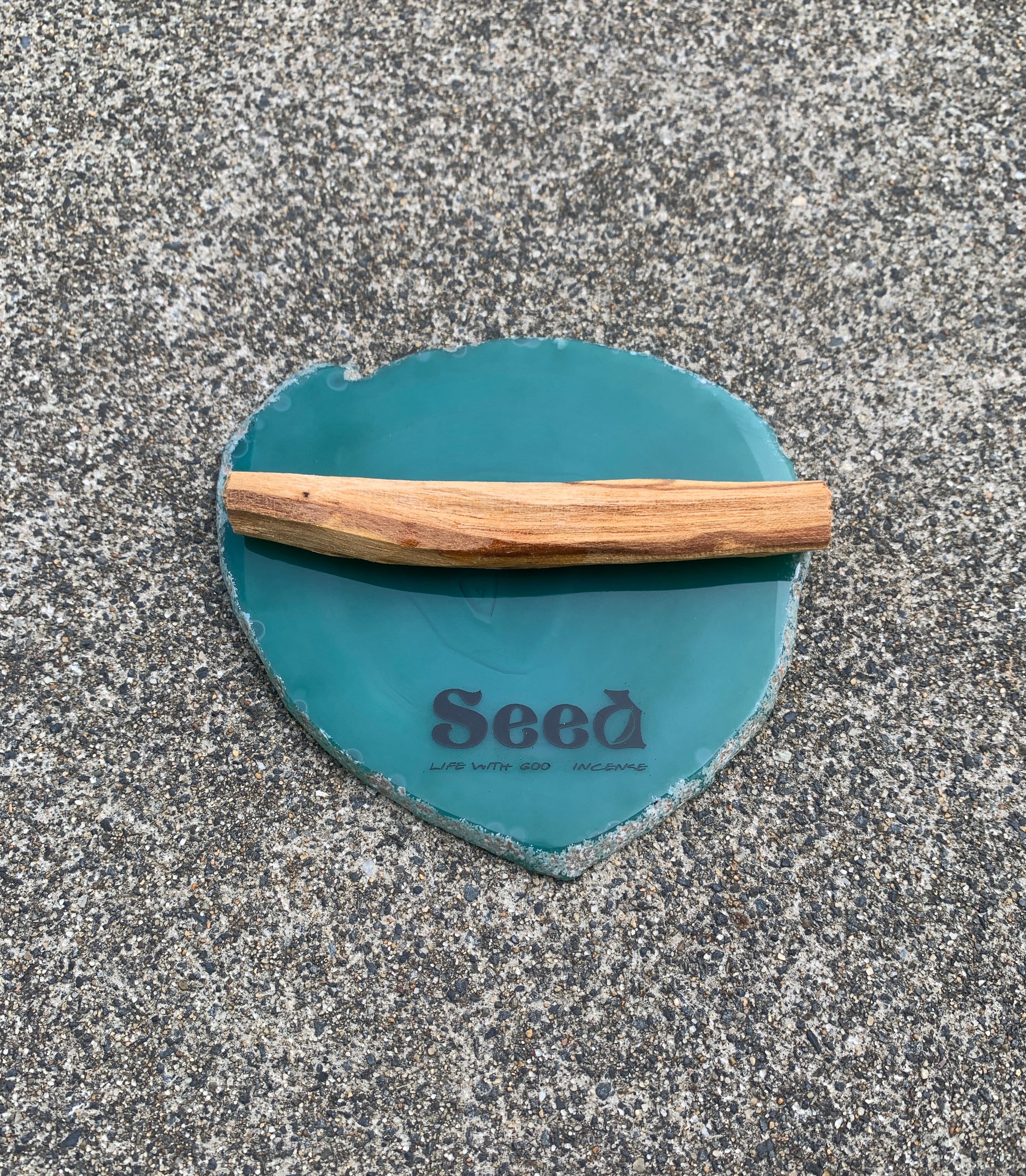 Seedロゴが刻印された、世界にひとつだけのメノウ(瑪瑙)のパロサントプレートです。
