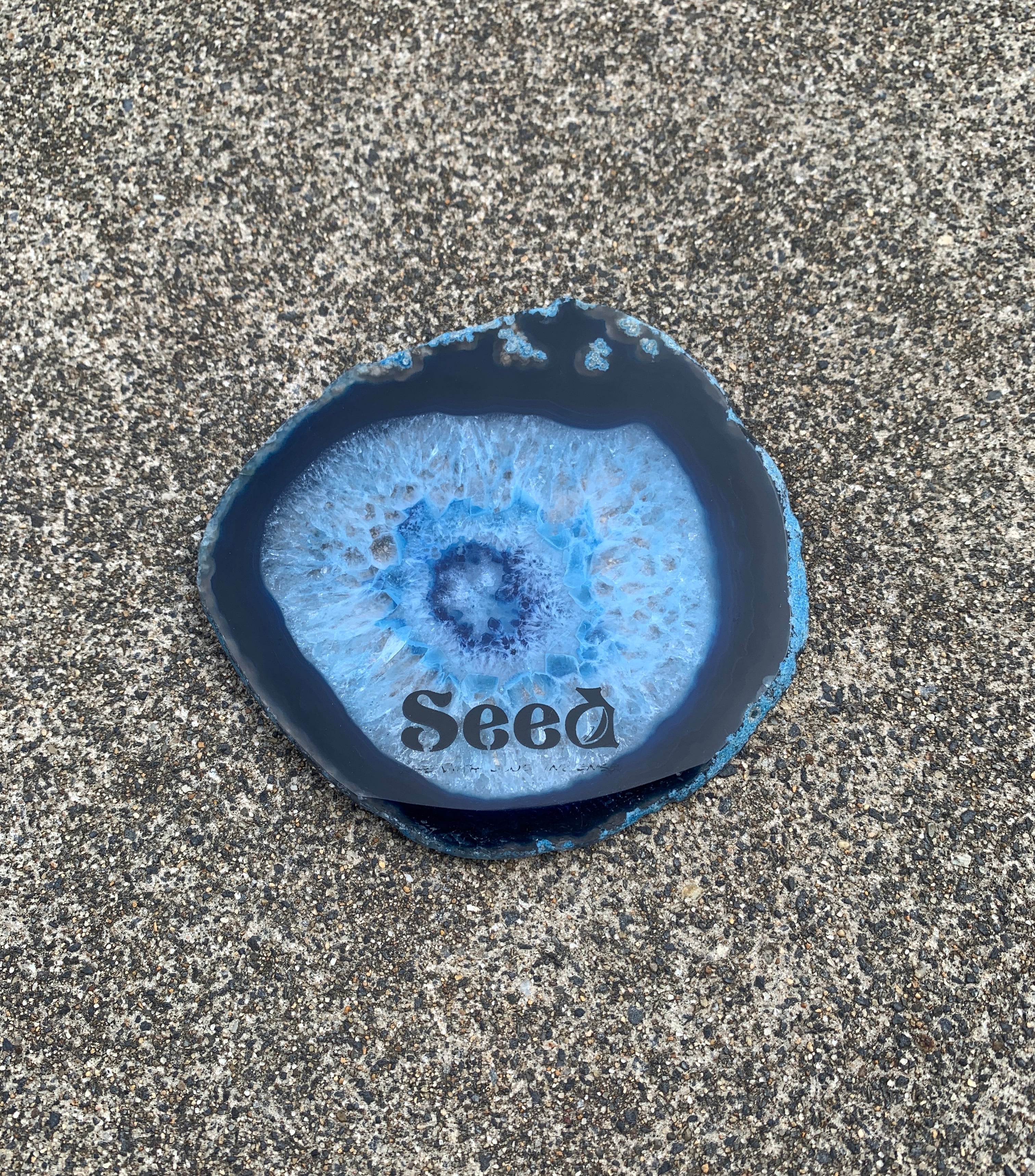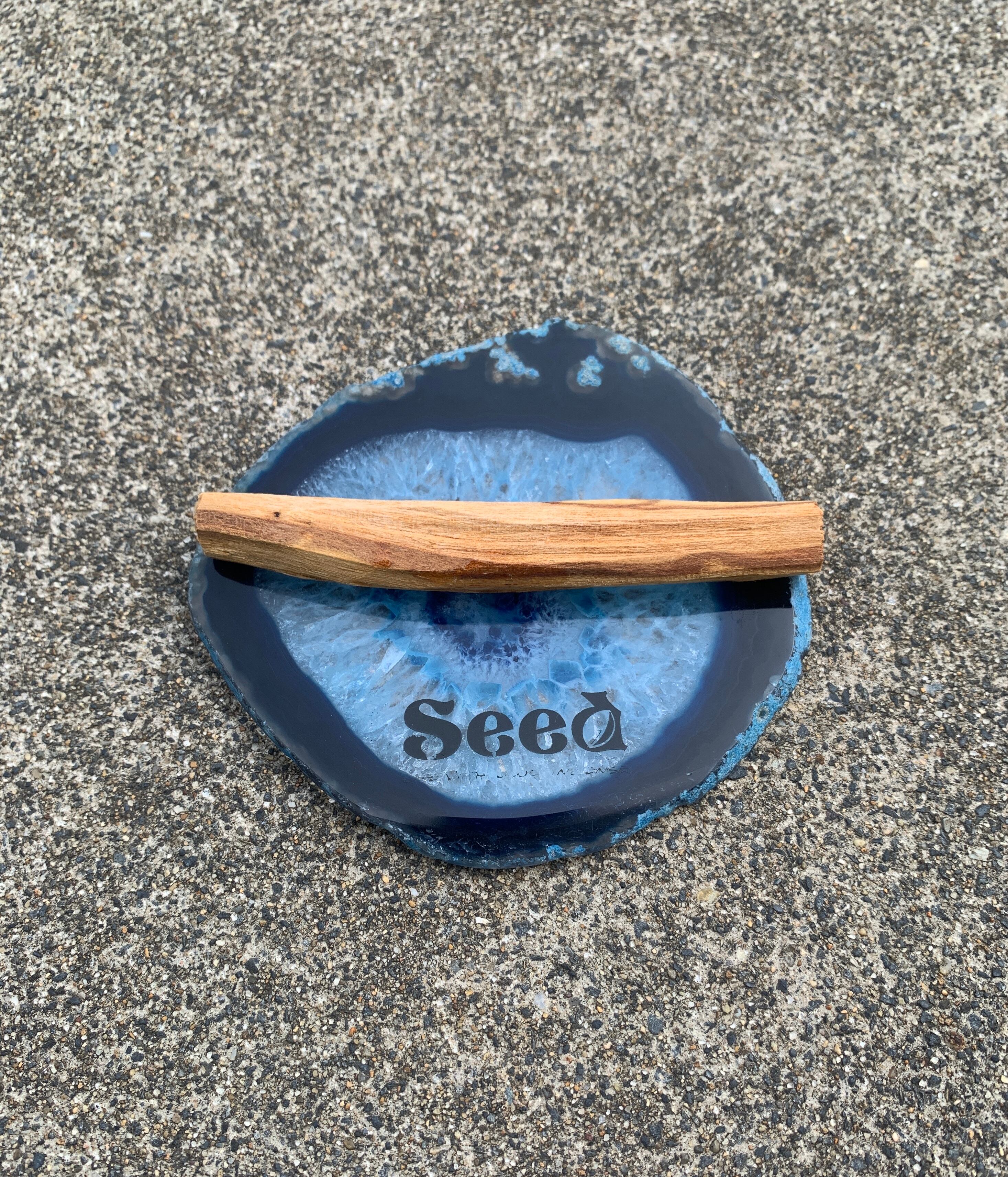 Seedロゴが刻印された、世界にひとつだけのメノウ(瑪瑙)のパロサントプレートです。
